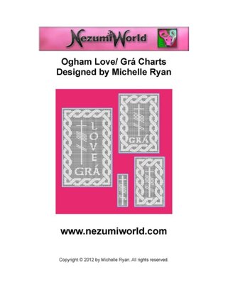 This E-Booklet has 4 ogham script charts for filet crochet. The ogham script used translates to Gra the Irish Gaelic word for love, 3 charts are surrounded by an interlocking knotwork border design. The smallest chart has the Gra script and a simple box surround (a good beginners chart). All charts are different sizes (the first row is written for both a 1 x 1 & 1 x 2 grid). Additional information sizes using different yarns are also included. Uses American crochet terms. This is perfect for a wedding wall hanging, tablecloth, throw or blanklet. (depending on yarn/ thread used) The charts will also work for other crafts - cross stitch, knitting, beading.