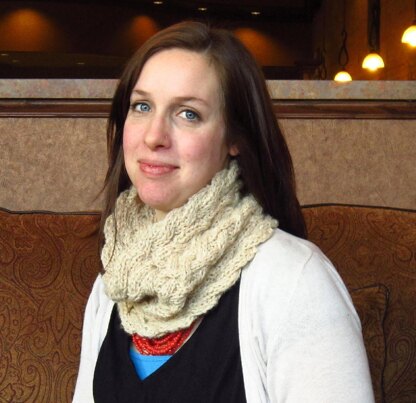 The ultra-soft yarn used for this cowl was perfect. It's an alpaca/bamboo blend which makes it unbelievably soft and smooth. Since it's a chainette yarn, it's also airy and light. With just the right amount of drape, this cowl is really comfortable to wear.