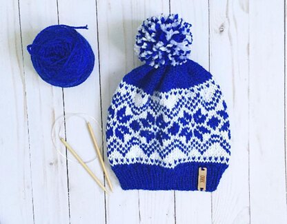 The Oh My Snowflake Hat pattern: • Features amazing snowflakes and heart patterns • Perfect for sweater weather! • Written instructions with a color chart • and a photo tutorials link included.