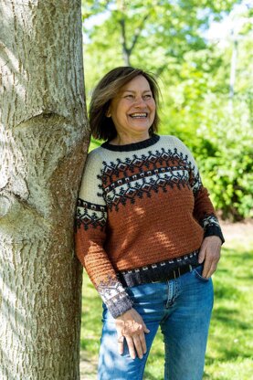 The pullover is loose-fitting, falls at the waistline and is worked in the round from the bottom up until the divide for the armholes. Front and back are then worked separately and joined together at the shoulders with a 3-Needle Bind Off. Sleeves are picked up along the armhole edge and worked in the round. Colourwork is worked both flat and in the round.