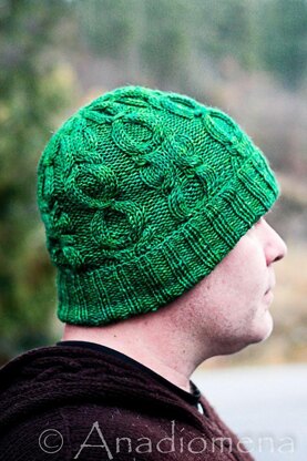 Old Town Hat is a bottom up beanie that features dramatic and unusual cables. The hat has a regular ribbed brim, however the design also has a folded brim option for that extra warmth should you need it.