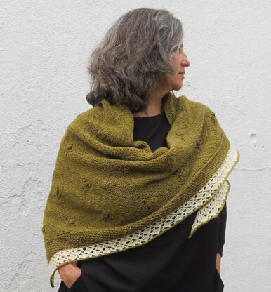 Olival Shawl starts with just one stitch, in a classic triangular construction. It has a simple seed stitch edge and the body is worked in reverse stockinette with scattered sprouts, small trees if you prefer. A contrasting edge, evoking an hedge protecting an orchard, an olive grove, Olival. The yarn is sport weight, soft, hand-dyed to this magnificent green: Laurentino, from Roll up the Sheep. Quickly completed, it's a pleasure to wear, a warm and stylish accessory for all occasions.
