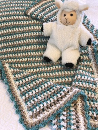 The all-over half double crochet stitch pattern makes this cozy blanket a relaxing project for all skill levels. One-row stripes in three colors allow you to carry the yarn up the side without cutting. Use the simple edging instructions provided, or customize the blanket with your own choice of border.