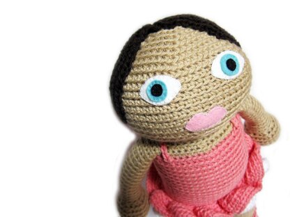 Olivia's clothes are crocheted on. This means there's a minimum of sewing and there are no pieces to get lost in play! She's suitable for your littlest one, but feel free to use craft eyes (instead of the felt eyes, shown) for children over 3.