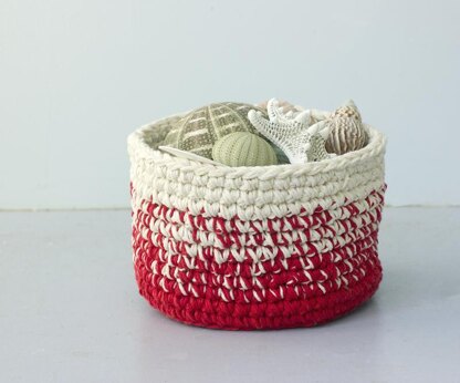 American crochet terms. A lovely basket to decorate your home - fill it with shells or dried flowers or use it as an attractive storage container. The ombre color change makes it special. The pattern calls for easily available cotton yarn so you can try different color combinations. The basket in the photo is about 7 inches wide and 4 1/2 inches tall but the basket can be made in any size. The pattern is not difficult and is appropriate for anyone with basic crochet skills. It works up quickly.