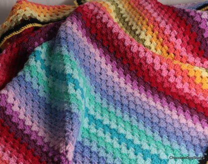 Create your own Ombre Granny Stripe blanket. Complete with color listings and instructions. This pattern is an easy pattern and suitable for a beginning crocheter. The pattern is to create the blanket in the photograph and will be approximately 48" x 68". The supply list, yarn brand, color choices and edging pattern are all included in this pattern. You will download the PDF file directly to your computer. This is an easy pattern with many photographs to help you along. The stripes run from head to toe along the length of the afghan. Skill level: Beginner Skills needed: • Double crochet• Slip stitch • Weave ends in • Change colors Supplies needed: • Yarn • Scissors • Large eye needle • Size g crochet hook or size needed for gauge These instructions are written in U.S. crochet terminology. The yarn used is acrylic and you may wash this blanket in cold water and lay flat to dry.