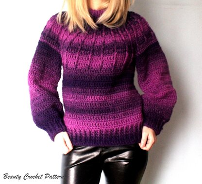 Ombre Sweater is big, warm and cozy. The pattern includes 2 sizes: S/M and L/XL