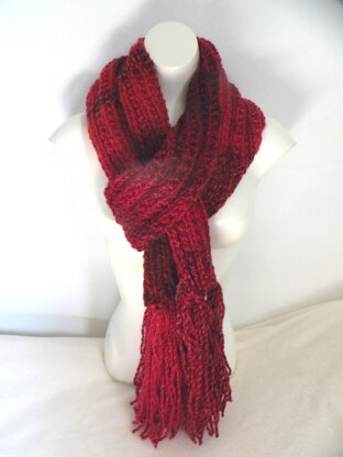 I created this pattern to make the most of the beautiful marble chunky yarn by James C. Brett which comes in many colours. I wanted something not too complicated that would make the yarn go further and look stylish at the same time. The flat rib stitch combined with long tassels makes this a versatile scarf that can be made with one ball of yarn.