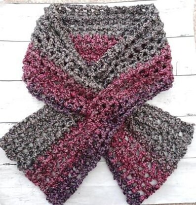 What is a keyhole scarf? Usually a keyhole scarf is shorter than a regular scarf with an opening at one end where it fastens together -- no more worries about losing your scarf!