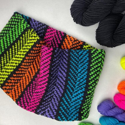 Make yourself cosy with this colourful cowl. Knit with simple colourwork in DK, it’s a great weekend project and perfect for using up left over yarns and mini skeins. Worked in the round, with a combination of written and charted instructions, the completed cowl is fully reversible, with the working side of your knit hidden for a clean finish.
