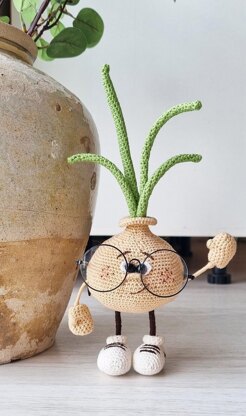 This crochet pattern provides detailed written instructions for creating the toy, including the body, arms, legs, and leaves. Please note that the glasses are a decorative element and are not included in the pattern; you can purchase them separately at any craft store. The pattern consists of 15 pages and is accompanied by more than 20 photographs.