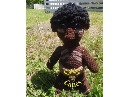 Oola is approx. 12 inches tall. His head and body are Coffee, and the loincloth is Cafe Latte. The hair is a sc, ch3 stitch using Black. I used stiff cardboard in the feet so he could stand alone. The spear is a small wo