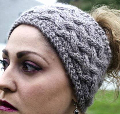 This is a warm headband/ear warmer that knits up quickly and is a good way to use leftover yarn. This headband is designed with two buttonholes, so you can adjust the size if it stretches over time (which yarn tends to do). The button construction also allows you to put on the headband without pulling it over your face and messing up your hair.
