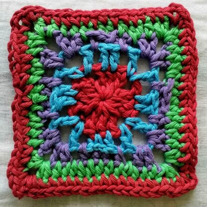 I'm currently loving the back post stitching and V stitch, and have fun turning a circle into a square. These gorgeous bright happy colours from Paintbox were inspiring me too! In creating this, I had in mind a table runner or a throw without having too much density in the squares.