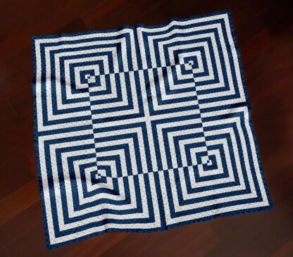 Optical Illusion Blanket C2C CROCHET PATTERN 53×53 inches Deep Blue Mosaic Afghan