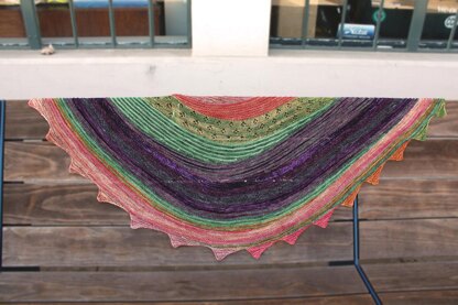 This engaging shawl design uses traditional pi shaping combined with short row striping to create an accessory with incredible drape and wearability.
