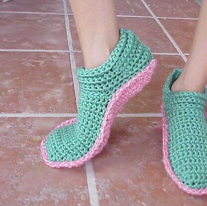 The pattern with options. You will want to live in these slippers! The unique heels make them hug your feet in total comfort. These slippers make up super fast.