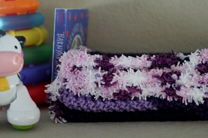 The adorable, functional, and easy to knit baby blanket is fast, fun, and full of personality. You can use different colors to create your favorite color scheme. It’s created with only knit stitches. I used a chunky weight yarn. The edging is crocheted on using a fun super bulky fiber.