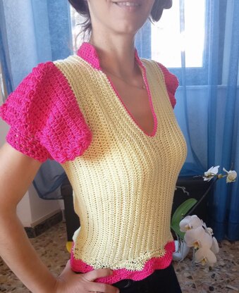 The pattern is made with fixed measurements for each size. You'll find write instruction, diagram and pictures. The sweater is very elastic and the measurements are smaller than the corresponding body measurements, creating a snugger fit.