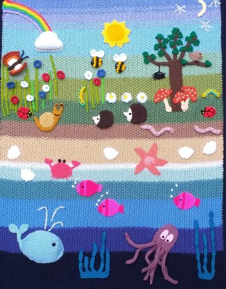 - Oddments of yarns of choice for the motifs. French Knitting doll (for the wiggly worms & snail's shell). A lot of patience! This project takes time :)