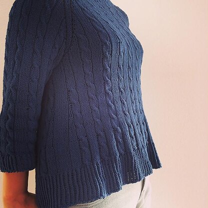 Oval Lines is a simple cabled sweater. My daughter named it “Oval lines” because she thinks the cables pattern look like the lines of oval shapes. It would be your nice outfit for chilly autumn/winter with wool and also for spring/summer with cotton or linen.