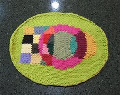 The Oval Modern Art Coaster is one of Knitvana Art Knittings Designs. The coaster size is 11” x 9”.