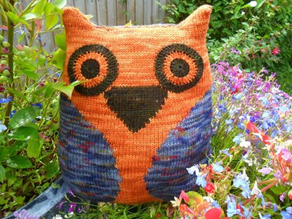 Owly is an adorable companion cushion. Perfect for practising your colourwork skills, his charming front is worked using intarsia, and his colourful back uses stranded knitting. Worked flat & seamed, he's fun from the moment you cast on.