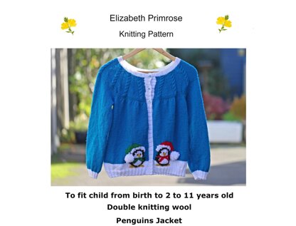 Knit our Penguins Jacket suitable to fit a child from 2 to 11 years old.