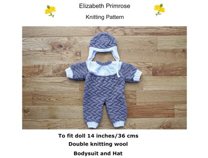All-in-One Bodysuit and Hat to fit a doll 36 cms or 14 inches