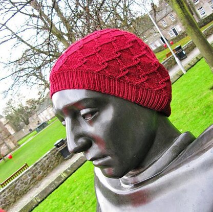 “Pòg” is the Gaelic word for a kiss. The interlocking lattices in this hat barely “kiss” one another, giving the pattern its name. This hat comes in three adult sizes and can be made in two versions; either a shorter beanie or a longer slouchy hat. The pattern also incorporates a neat fold line, allowing it to easily be folded back to make a shorter hat.