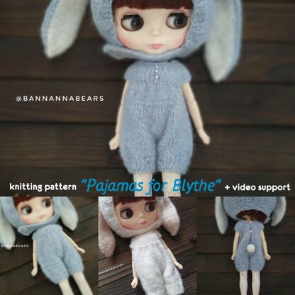 Pajamas for Blythe doll KNITTING PATTERN can fit not only for Blythe or Icy doll but for other doll and toy too: Pullip, Obitsu24, Waldorf, textile dolls, teddies, amigurumi, stuffed toys, american girl, Paola Reina etc. Just use apropriate needle size and yarn Small doll romper pattern includes 11 pages, 40 photoes and 4 video supports. Using this Blythe knitting pattern you can knit the pajamas without any seams for your pretty doll or toy. The pattern is written in detail but you must be familiar with basic knit stitches and techniques such as: - cast on/cast off; - how to make K and P stitches, P2tog; - worked 'back and forth' on 2 knitting needles; - worked in the round. Video support has: - how to avoid the hole between the first and the last sts while casting off a round; - how to sew the hole between the trouser-legs; - how to hide all the threads tails after knitting; - how to make loops for the buttons.
