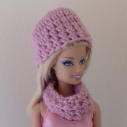 This crochet PATTERN is for an accessory set for a Doll. The set includes a beanie, a headband, a cowl, and a scarf.