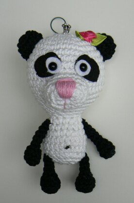 A pattern with pictures and description for a key chain PANDA BEAR.