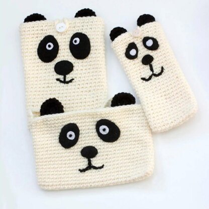 American crochet terms. Who can resist a panda bear? - this pattern includes instructions for a clutch purse, cross body bag and e-reader and phone cases. It is an easy, flexible pattern. The purses and cases can be made in different sizes, they can include a button or snap fastening and can be made with or without straps. You can use any worsted weight yarn, acrylic, cotton or wool. I use a nice quality acrylic, Michael’s Impeccable, which is sturdy but not too stiff and it’s washable. The works up pretty quickly so it's nice for last minute gifts. These little panda items are great for gifts for kids and animal lovers. The pattern is not difficult and is appropriate for anyone with intermediate crochet skills or an adventurous beginner. They are worked in the round don't require seeming. The eyes and nose are cut from felt (a diagram to follow is included) and sewn on.