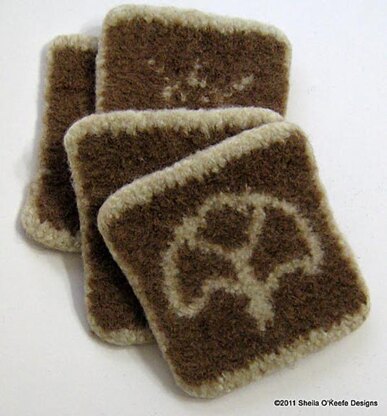These quick and easy coasters are one of the results. They're a wonderful way to use up worsted weight leftovers. They're also a great project to learn stranded knitting. Almost any inconsistency in the beginner's tension will literally come out in the wash when the coaster is felted.