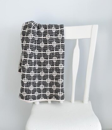 This blanket is made using a mosaic stitch. There are no colour changes within the working rows, the colour pattern is made by slipping the stitches of one colour, while knitting the stitches of the other.