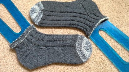 The design is very quick to knit and doesn't use much sock yarn - I used only 50g of left-over yarn to make a pair (I do have small feet - UK size 3).