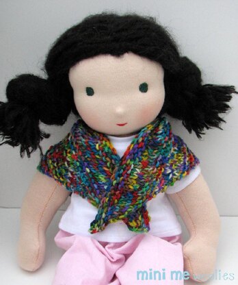 Constructed from the tip up, this is a wonderful shawl to learn shawl construction on. The fun stitch techniques look more challenging than they are, making this pattern suitable for an advanced beginner. The Patchwork Prairie Shawl can be worn over the shoulders or tied around the heads of your 10”-16” dolls. The finished, blocked size is 15” wide and 8” long.