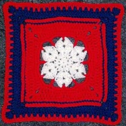 A simple star surrounded by vivid colors worked in back post and long stitches. Pattern is rated as "Easy." This pattern is designed especially for worsted weight yarn.
