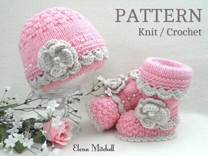 PATTERN Knitting Baby Girl Baby Hat Baby Booties by Elena Mitchell
