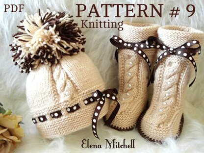Pattern Knitting Baby Set Babies Newborn Shoes and Hat