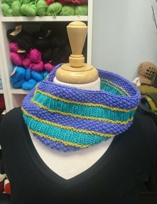 This fun little cowl knits up quickly using small amounts of worsted weight yarn. It’s the perfect thing to wear after a day on the slopes, or while running errands in the city!Materials Needed: