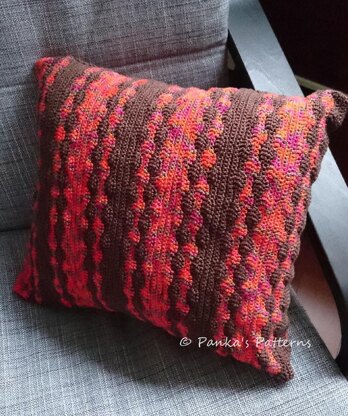 A crochet pillow cover with a playful yet easy pattern. It fits a pillow of approx. 40x40cm. The pattern is easily adaptable to fit pillows with other sizes.