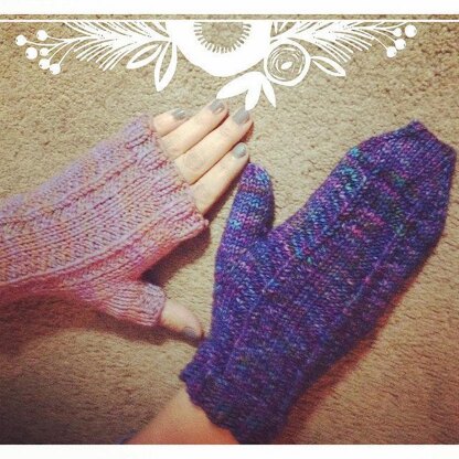 Two patterns in one! This pattern is complete with both fingerless mitt and mitten instructions in two sizes!