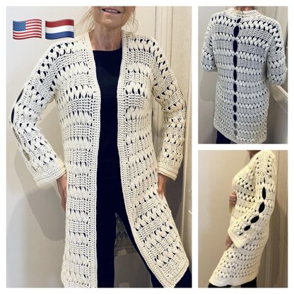Sizes: Small-Medium-Large- XLarge and up Peekaboo in the most fanciest way. A lovely crochet stitch with a peekaboo detailed back and matching sleeves. Wear it as a cardigan or as a swimsuit coverup. Either way….you wll be turning heads :) Do you know how to crochet Double crochets, can you count to 6? Well…then this is a perfect project for you! Pattern is written in English with standard US and Dutch. You receive written instructions, a step by step photo tutorial to craft and assemble the cardigan and a link to my YouTube channel. Pattern PDF will be available for instant download upon payment. You will receive an email that your payment has been processed, and it will include a link to your download. MY MOTTO: the key to beautiful products is simplicity, patience and compassion. Welcome to my FACEBOOK group: CROCHET DONE RIGHT Come visit my YOUTUBE channel: CROCHET DONE RIGHT