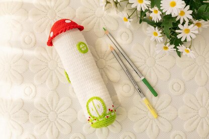 Size: The finished pencil case stands approx. 21 cm, 8.27 inches tall. Certainly, the thinner yarn you use, the smaller the doll will be.