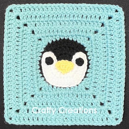 This penguin granny square is approximately 20 cm x 20 cm (8.15" x 8.15"), and can be used as a component for crocheted items such as a blanket or cushion cover. The square can be used repeatedly, or with others.