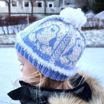 Winter hat for children with penguin pattern.