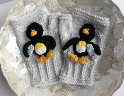 Novelty mittens in four sizes to suit ages 3 yrs to adult, featuring a pair of little penguins.