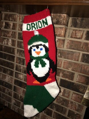 This adorable penguin stocking is appropriate all ages and will be a keepsake for the lucky receiver. Knit with acrylic yarn and angora used for the brim of his stocking cap and top pom. You may also just sew on a pom on the top of the hat.